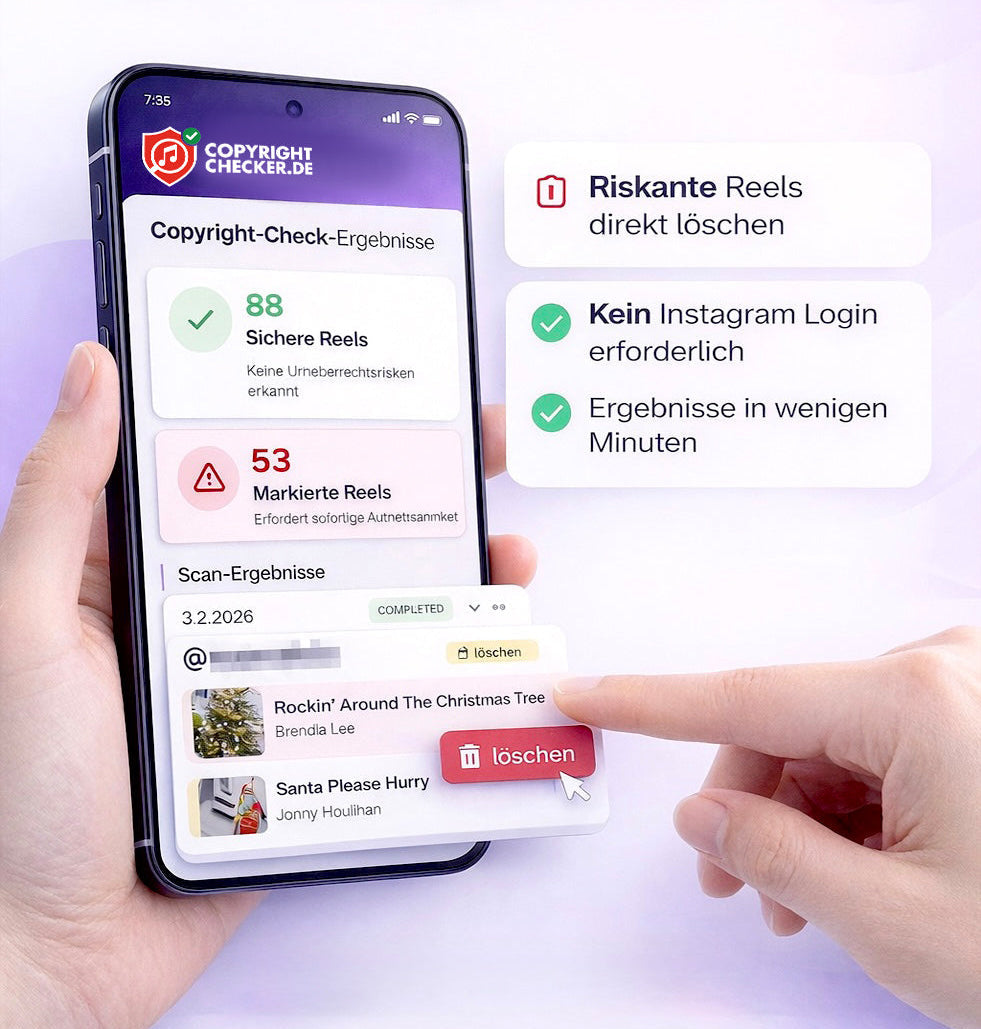 Copyrightchecker.de scant alle bereits geposteten Reels & zeigt dir sofort, wo Urheberrechtsfallen lauern.